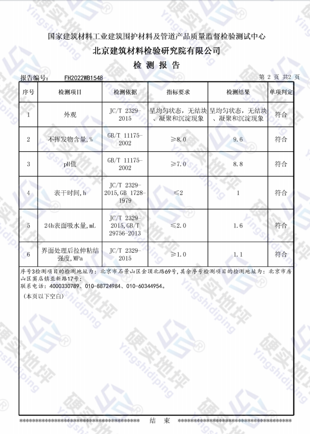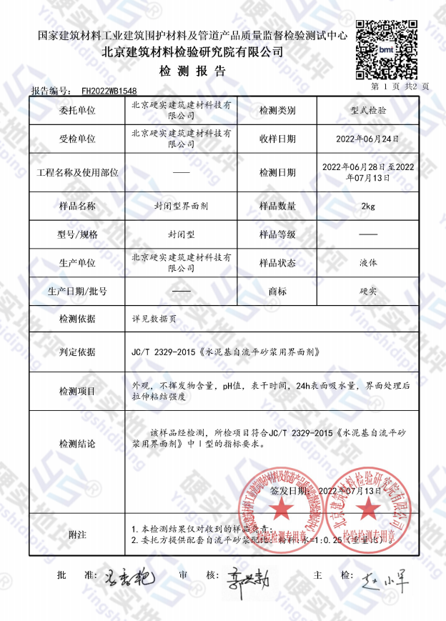 封闭型界面剂检测报告